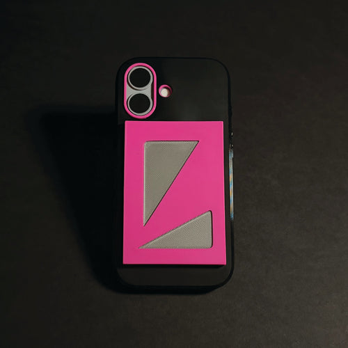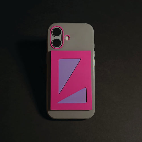 A grey flexible shell, a magenta interior and slider, finished with lilac purple accents.